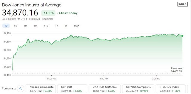 Illegitimate president Creepy Joe Plugs Whisper Biden rebounded with a win in the DOW with a gain of 78 points today as White House occupant.  That drops dementia Joe’s record to 68-51.